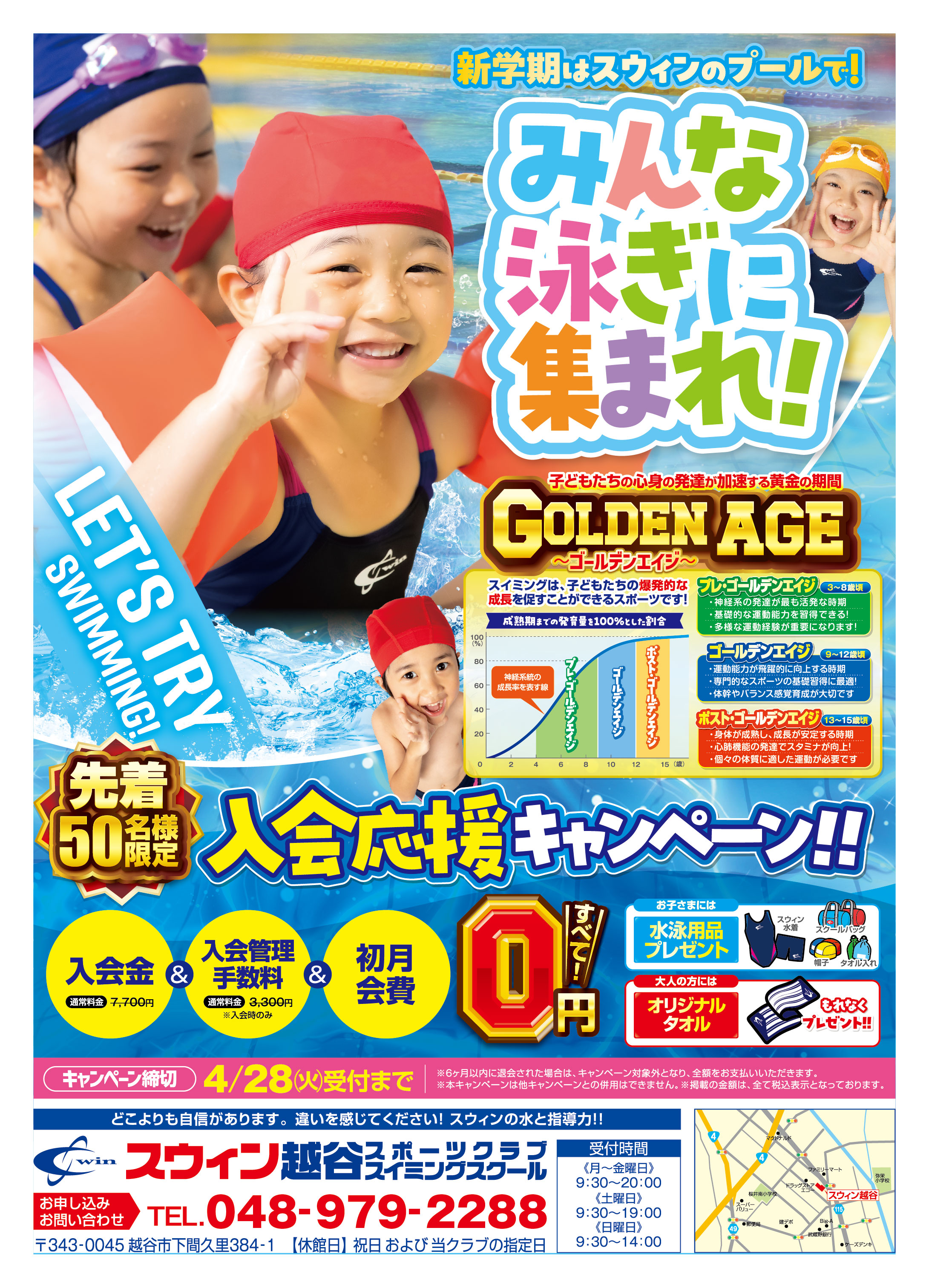 リニューアルオープンを記念したとってもお得なキャンペーンも実施中なので、お友達やご家族を誘って是非スウィン越谷にお越し下さい!