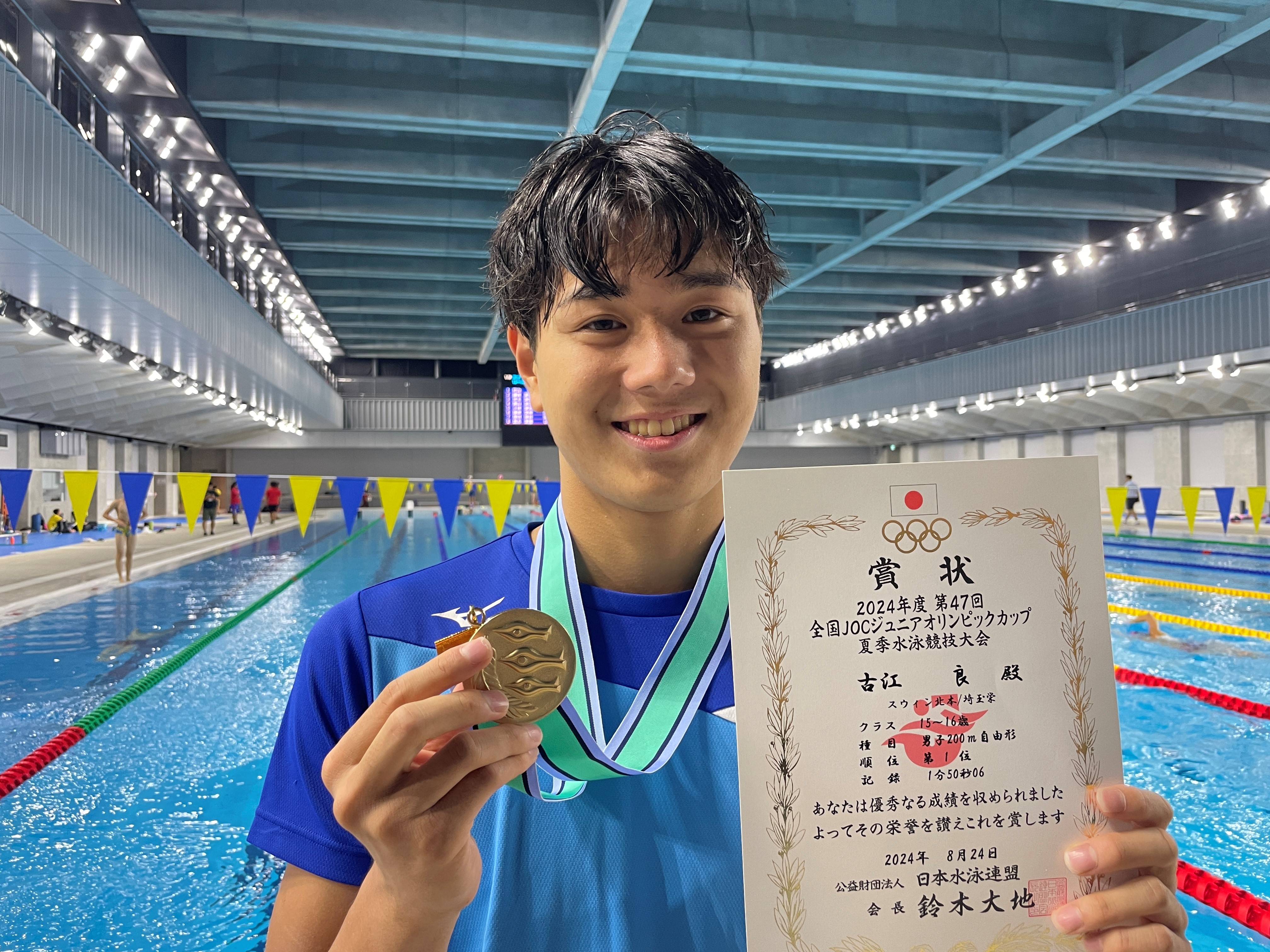 東京辰巳国際水泳場で行われたジュニアオリンピックでは、古江 良選手が200m・400m自由形で優勝し2冠を達成!