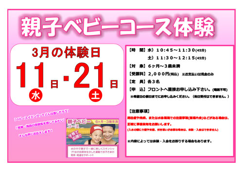 一般限定「親子ベビーコース授業内体験」