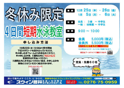 学校が休みの時に、家にいるなんてもったいない!スイミングで冬の間に上手になろう!!