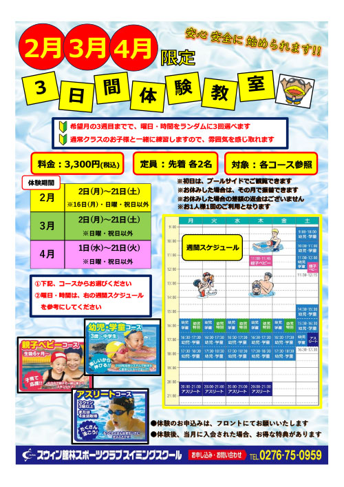2月・3月・4月限定【3日間体験教室】受付中!!!
