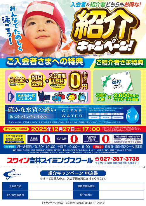 入会者&紹介者どちらもお得!!この機会にプールをはじめよう!